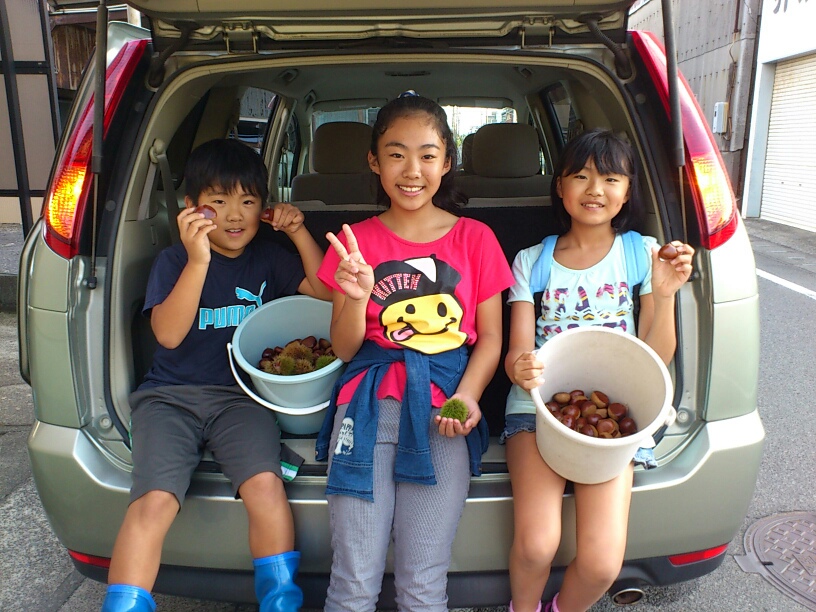 お友だちと一緒に、栗拾いへ行ったひより