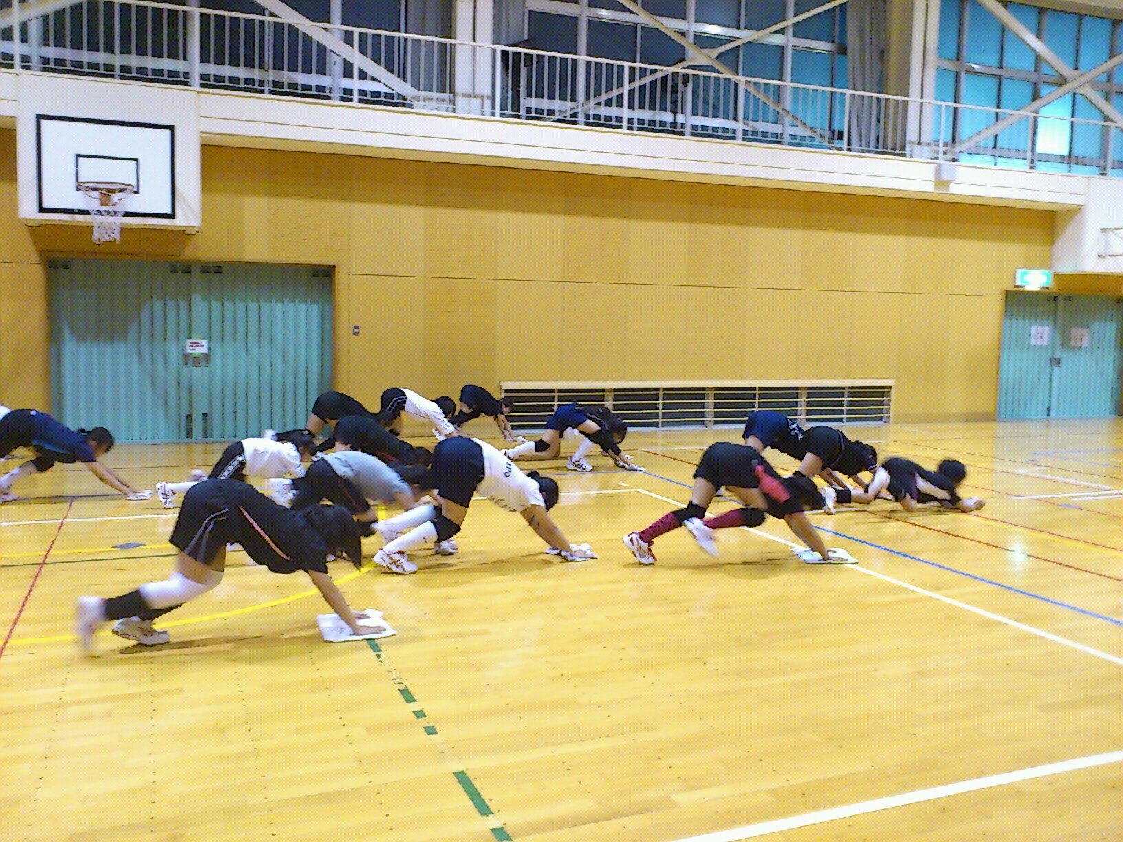 体育館全面使用につき、雑巾掛けもいつもの倍♪